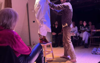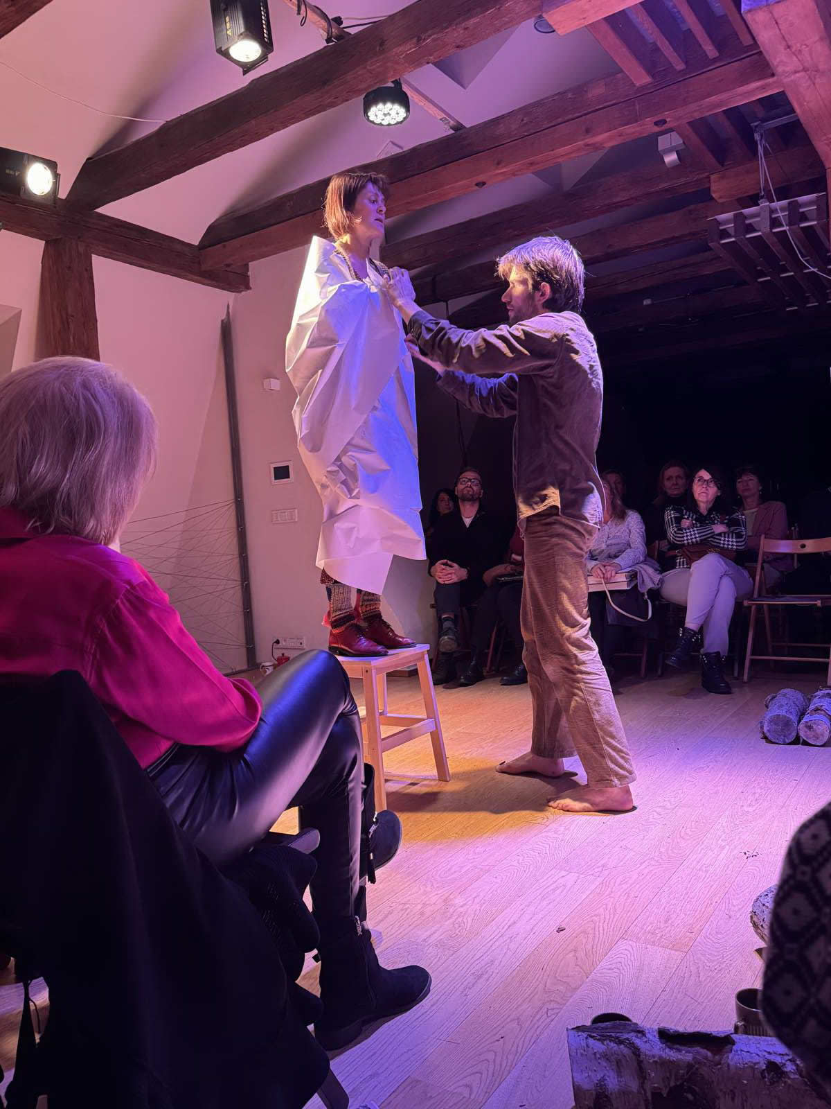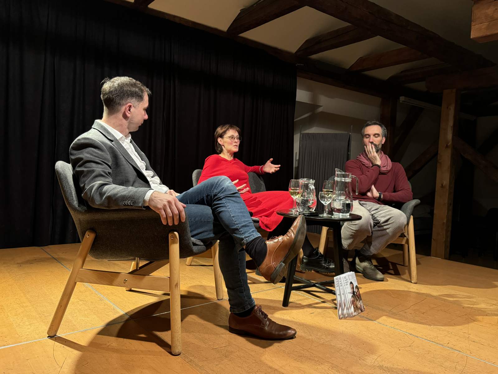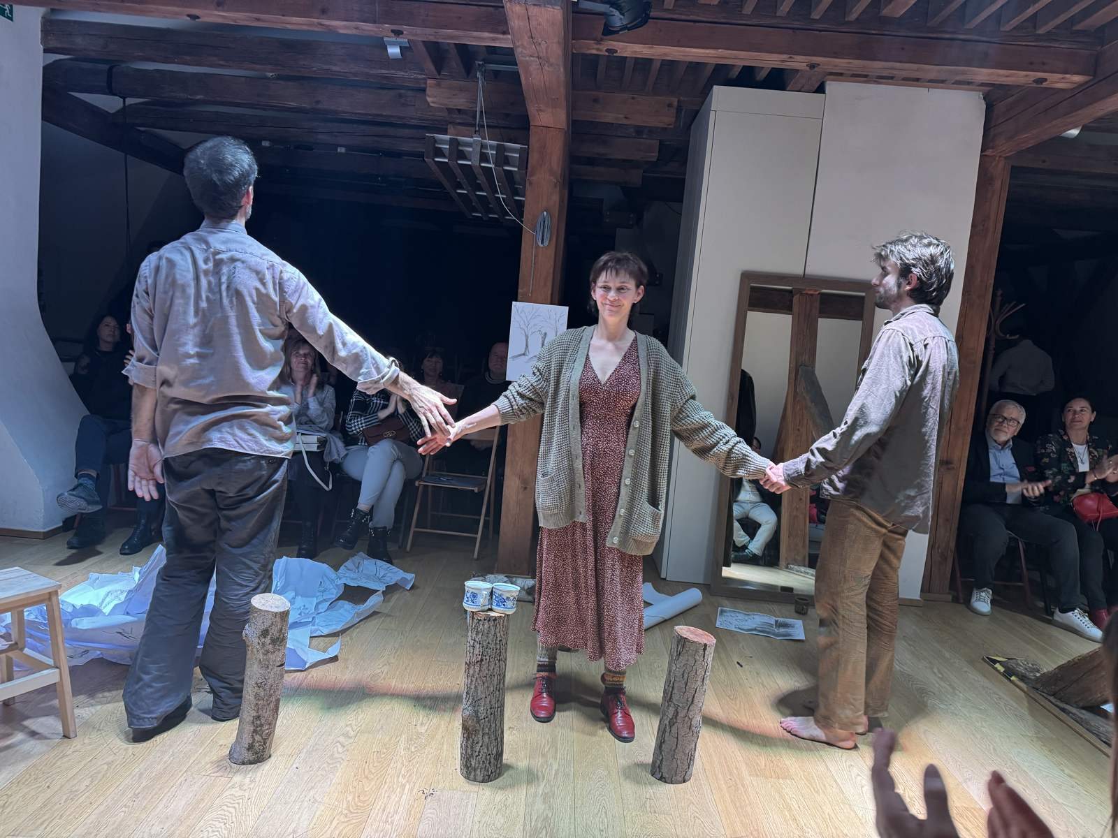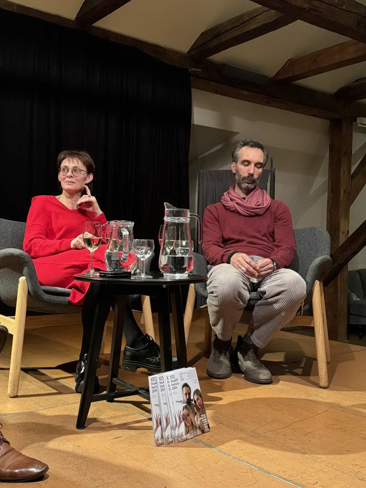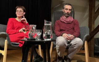 A v čem to bylo jiné? Po skončení představení si mohli diváci – naši členové ČMA při sklence vína popovídat s herci o svých pocitech z představení.